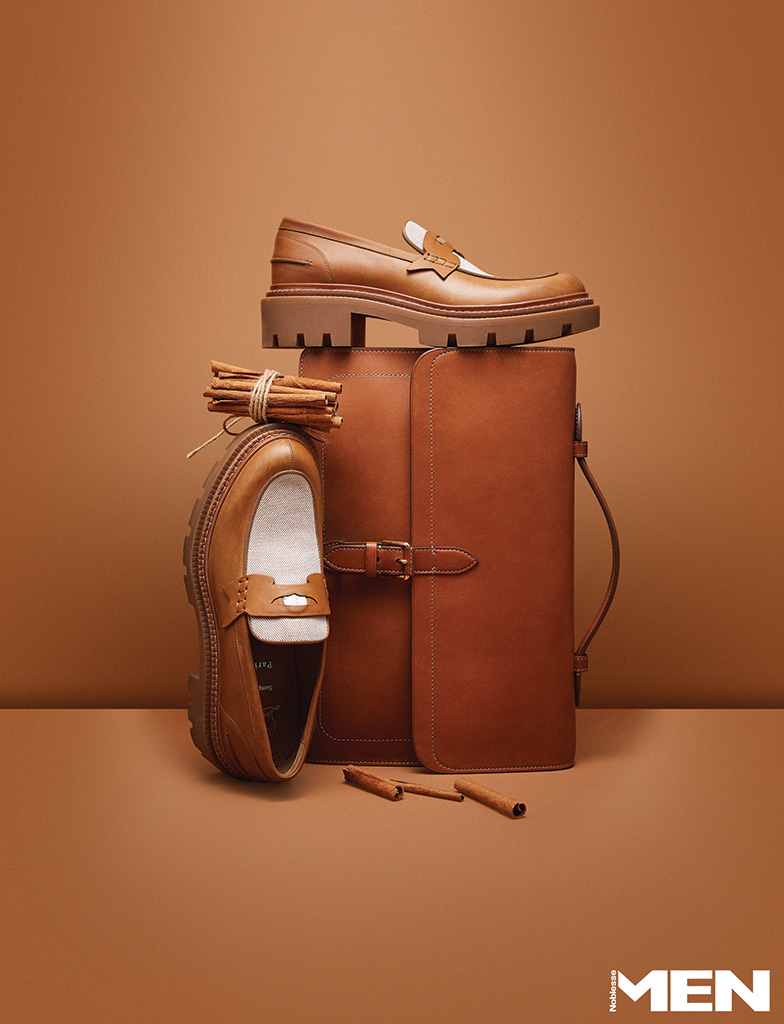 톤온톤의 청키한 굽이 돋보이는 목 컬리지 우오모 로퍼 Christian Louboutin, 부드러운 송아지 가죽이 시간이 지날수록 멋스러움을 더한다. RL 골드 베드포드 카프스킨 브리프케이스 Ralph Lauren Purple Label.