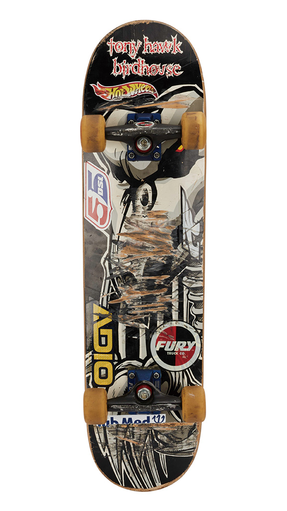 전설적 스케이트보더 토니 호크(Tony Hawk)가 줄리앙 옥션을 통해 자신의 오리지널 소장품을 출품했다. 총 99점 중 가장 핵심은 1999년 샌프란시스코 X게임에서 그가 세계 최초로 900도 공중 스핀을 성공시킨 ‘오리지널 버드하우스 팰컨 2 스케이트보드’다. 이 보드는 무하마드 알리의 첫 헤비급 챔피언 글러브나 마이클 조던의 ‘플루 게임’ 농구화에 비견되는 상징적 수집품으로 평가받으며, 추정가의 두 배가 넘는 115만2000달러(약 16억4000만 원)에 낙찰되었다. 스케이트보드 경매 사상 최고가를 기록했으며, 수익금은 저소득층 청소년을 위한 스케이트 파크 건설에 기부할 예정이다.