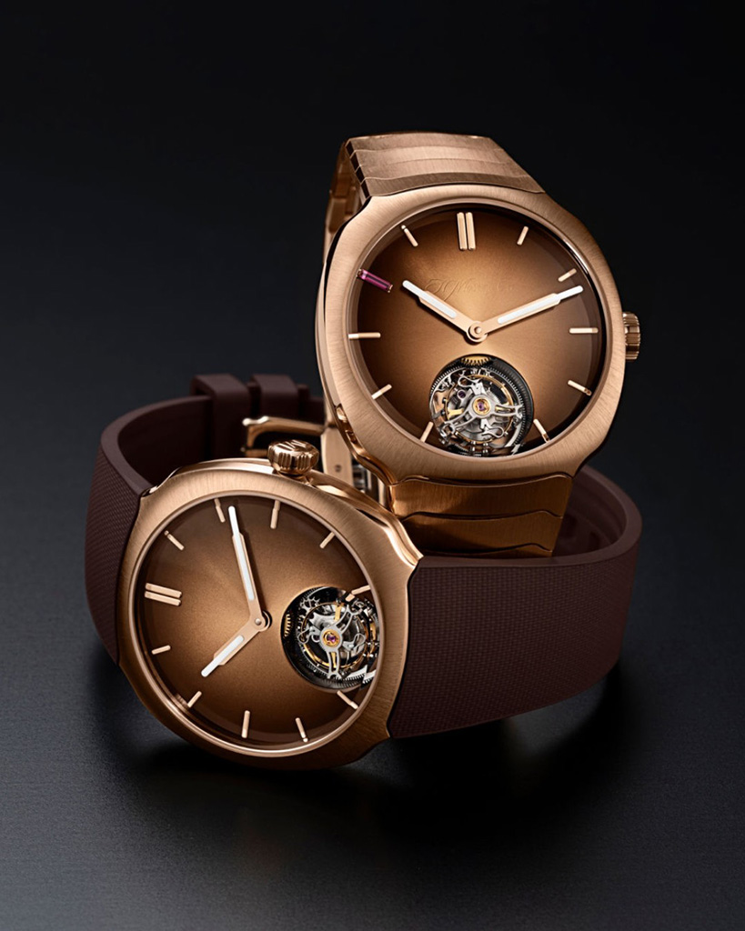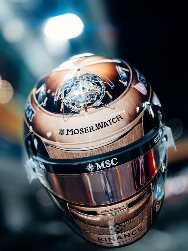 H. 모저앤씨가 프랑스 F1팀 알핀의 드라이버 피에르 가슬리와 협업한 한정판 모델 ‘스트림라이너 투르비용 피에르 가슬리’를 공개했다. 가슬리는 지난 10월 3일에 열린 2025 싱가포르 F1 그랑프리 트랙에서 이 시계를 착용했다. 지름 40mm, 두께 약 12mm의 5N 레드 골드 케이스에 돔형 사파이어 크리스털을 갖췄으며, 백케이스 역시 사파이어로 제작해 HMC 805 오토매틱 투르비용 무브먼트를 감상할 수 있다. 방수 성능은 120m에 달한다. 러버 스트랩(100점 한정)과 레드 골드 브레이슬릿(10점 한정) 두 가지 버전으로 출시하며, 가격은 각각 9만8500달러(약 1억3590만 원), 14만8500달러(약 2억500만 원). 스트랩 버전에는 가슬리의 헬멧 미니어처를, 브레이슬릿 버전에는 실제 레이싱 헬멧을 증정한다.
