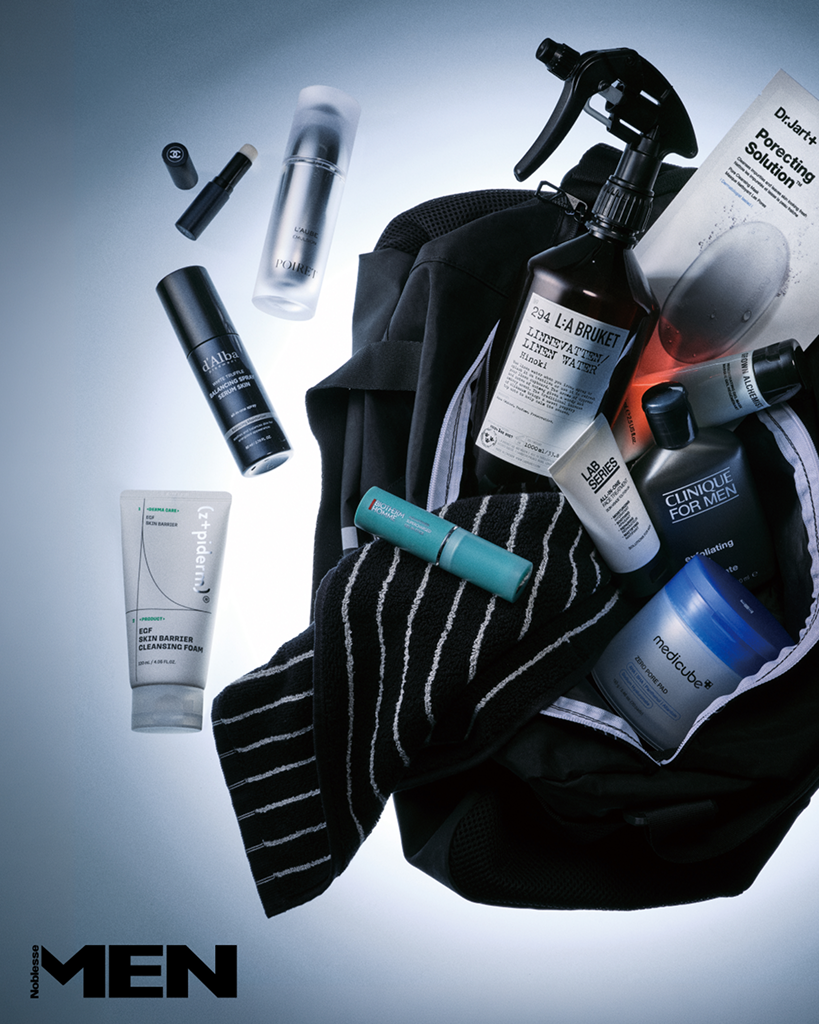 1 Zipiderm 러닝 후에는 땀과 피지, 노폐물을 씻어내는 강력한 세안이 필요하다. 피부 표면의 잔여물을 제거해야 이후 스킨케어도 효과를 볼 수 있다. EGF 스킨 배리어 클렌징폼. 2 d’Alba 운동 직후 피부가 달아오를 때 미스트 타입 스킨케어 제품을 사용하면 즉각적인 진정과 수분 보충에 도움이 된다. 화이트 트러플 밸런싱 스프레이 세럼 스킨. 3 Chanel Beauty 부드럽게 스며들어 번들거림 없이 깔끔하게 마무리되는 보이 드 샤넬 모이스춰라이징 매트 립밤. 4 Poiret 운동 후에는 피부 유수분 밸런스가 흐트러지기 쉽다. 스킨케어 마지막 단계에 고영양 제품을 사용해 필요한 유분과 수분을 균형 있게 채워주자. 로브 에뮐씨옹. 5 L:A Bruket 러닝 후 바로 샤워하기 어려울 때는 섬유 탈취 스프레이로 옷에 밴 땀 냄새를 없애자. 히노키 향이 퍼지면서 편안한 느낌을 선사하는 히노키 린넨 워터 1000ml. 6 Dr.Jart+ 피부 온도를 낮추는 동시에 늘어진 모공을 케어하는 시트 마스크. 울트라 블랙 차콜시트와 산소 버블이 모공 속 노폐물을 제거하는 더마스크 포렉팅 솔루션. 7 Grown Alchemist 스킨케어 시작 전 젤 타입 마스크 팩을 사용하면 열감 완화와 진정 효과를 볼 수 있다. 쿨링 젤 텍스처가 피부에 생기를 더하는 리제너레이팅 젤 마스크. 8 Clinique 세안만으로 부족한 피부 표면의 묵은 각질까지 제거하려면 각질을 정돈해주는 토너를 사용해보자. 피붓결을 매끄럽게 정리하고 다음 단계 스킨케어의 흡수를 돕는 엑스폴리에이팅 토닉. 9 Lab Series 운동 후 스킨케어 단계를 간소화하려면 올인원 제품이 답이다. 올인원 페이스 트리트먼트. 10 Medicube 러닝 후에는 땀과 피지 분비가 증가하므로 모공 관리가 중요하다. 토너 패드를 활용하면 스킨케어 첫 단계에서 피붓결 정돈과 모공 케어를 동시에 할 수 있다. 제로 모공 패드 2.0. 11 Biotherm Homme 쿨링 텍스처가 피부에 즉각적으로 수분을 전달하고, 번들거림 없이 산뜻하게 마무리되는 아쿠아파워 올인원 스틱.