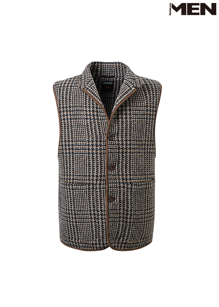Zegna 파이핑 장식 글렌 체크 헌팅 베스트.