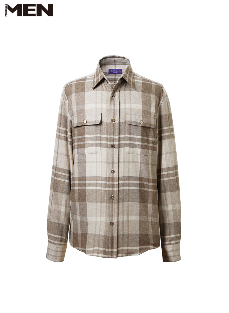 Ralph Lauren Purple Label 전면 플랩 포켓 타탄체크 셔츠.