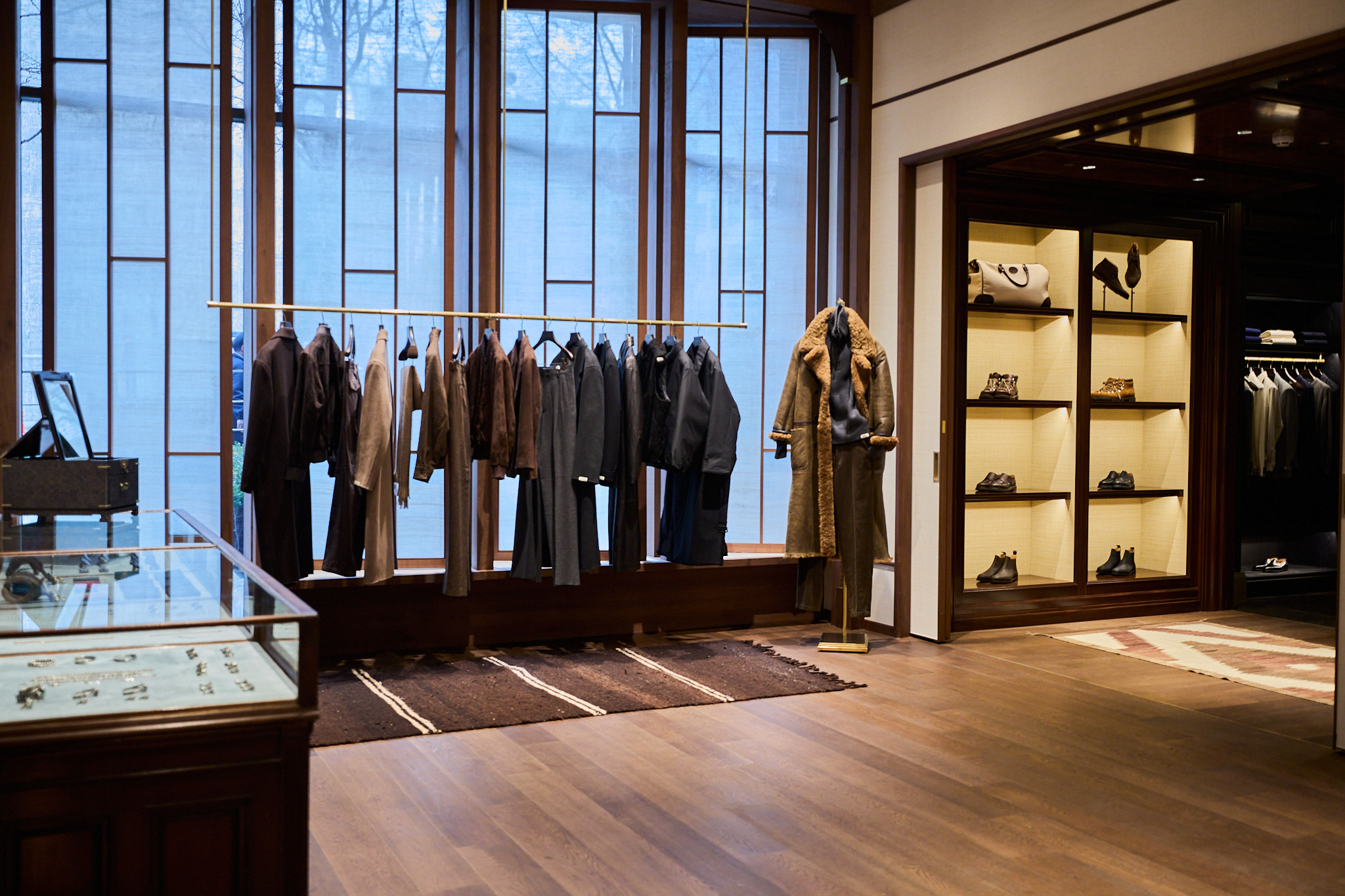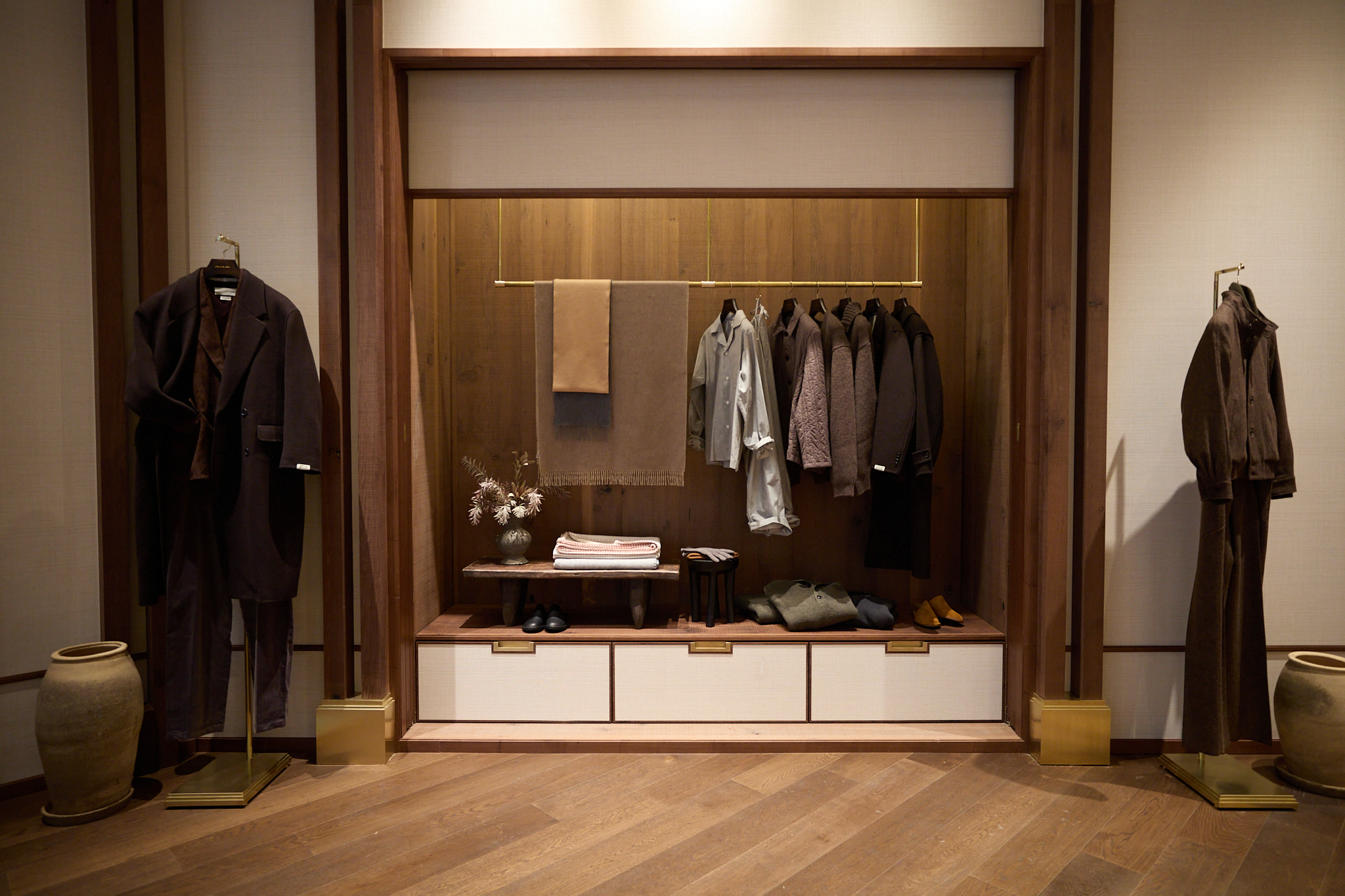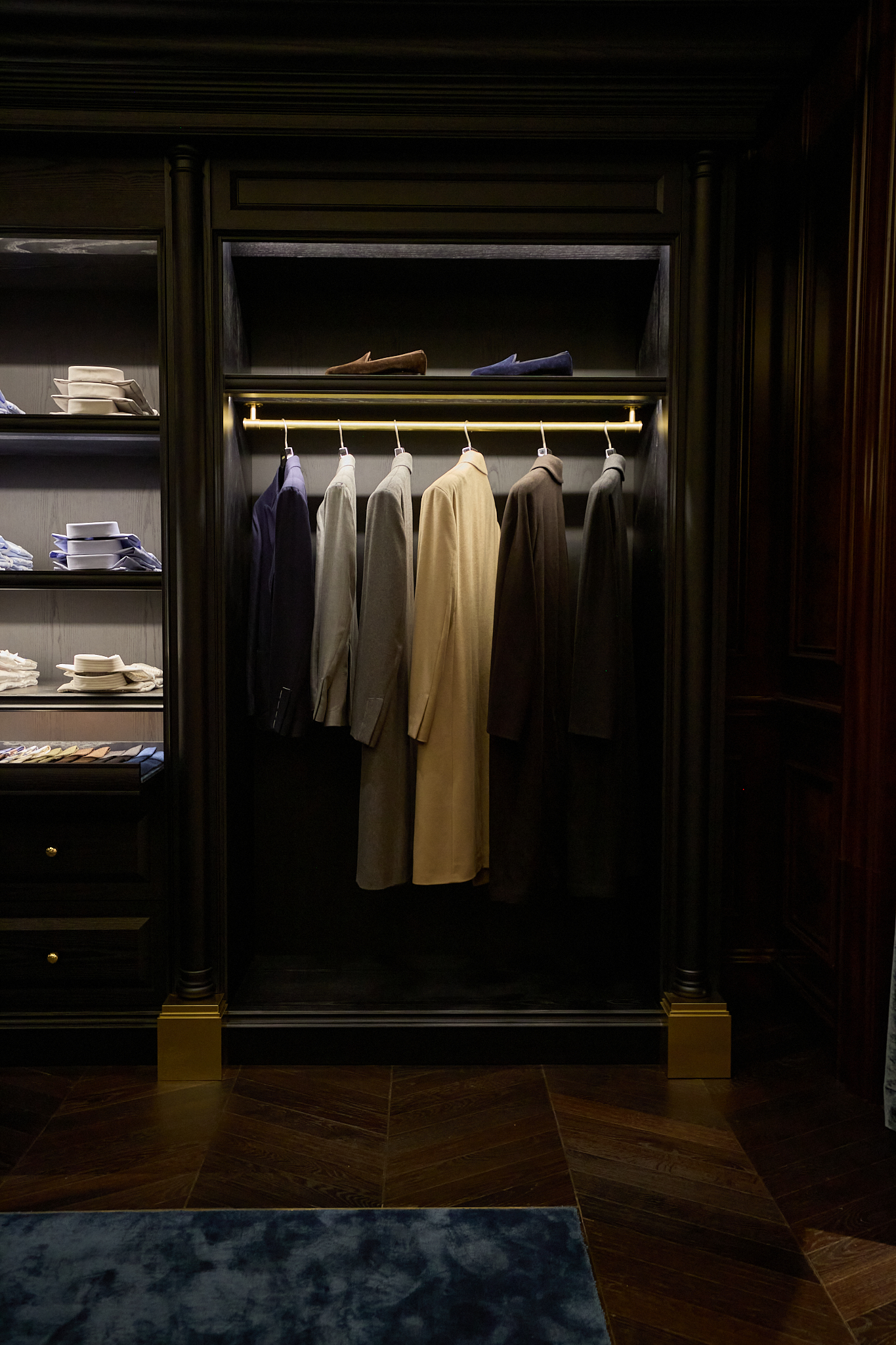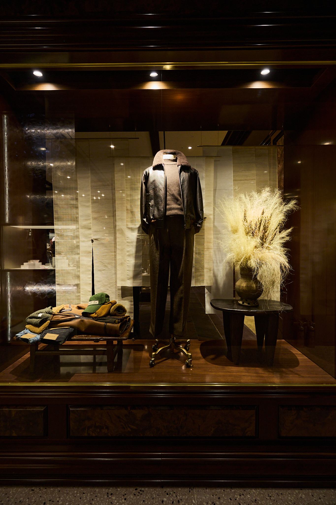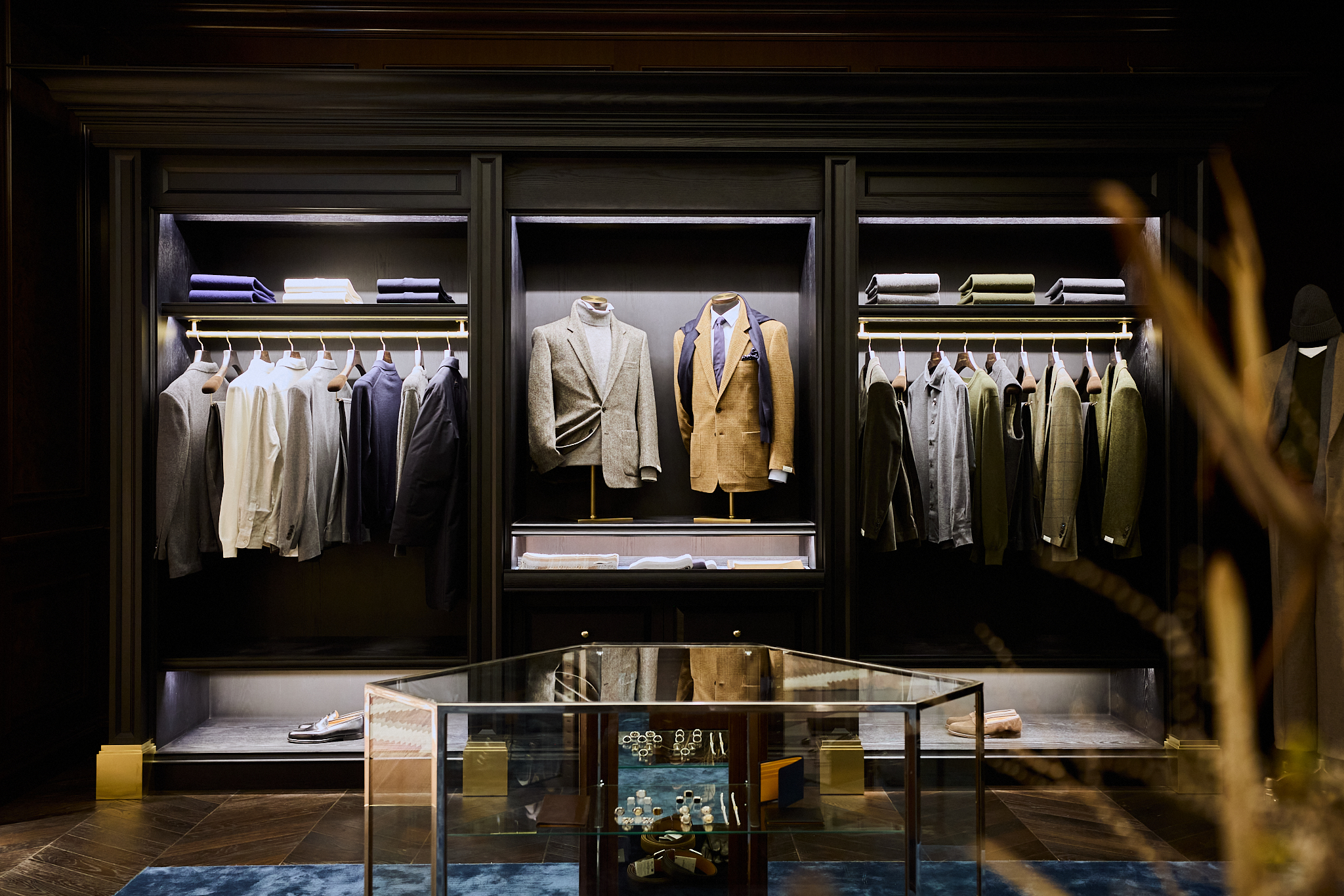 마지막으로 도달하는 포멀 존(Formal Zone)은 실크, 벨벳, 벌 우드, 대리석 벽난로 등 고급 소재로 완성되어 브랜드의 취향을 가장 깊이 있게 체감할 수 있는 공간이다. 맨온더분을 비롯한 다양한 브랜드의 포멀 라인과 테일러링 컬렉션이 진열되어 있으며, 브랜드가 궁극적으로 추구하는 테일러링의 정점과 남성미에 대한 해석을 가장 명징하게 보여준다.