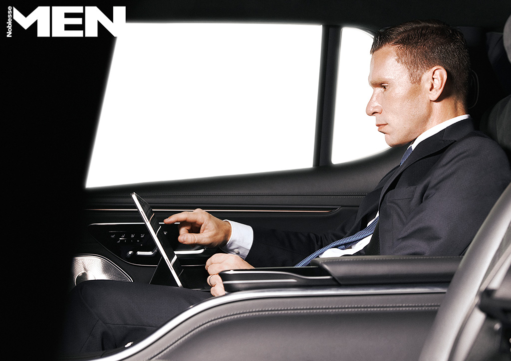외부 미팅을 마치고 사무실로 향하는 길 마이바흐 뒷좌석에서