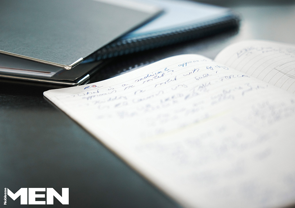 책상 한가운데에는 두툼한 노트가 있었다. 지난해 11월부터 쓰기 시작해 대략 1년에 한 권 채운다고 했다. 그 옆에는 아이패드와 노트북이 나란히 놓여 있다. 상황에 따라 주로 영어로 메모하는데, 때로 독일어가 끼어든다. 그는 한때 1년간 디지털 메모만 써보려 했지만, 결국 펜으로 돌아왔다. 손으로 써야 오래 기억되는 것이 이유였다. 잉크가 스며든 한 귀퉁이에는 굵은 영문 글씨로 이틀 후 있을 터키 출장 일정이 적혀 있었다. 그는 필요한 자료를 업무용 서류 가방에 차곡차곡 넣었다. “가벼운 동네 산책을 제외하고는 휴가 중에도 이 가방을 꼭 챙기는 편이에요.” 쓰지 않더라도 언제든 대응할 수 있다는 감각이 마음을 편하게 한다고 했다.