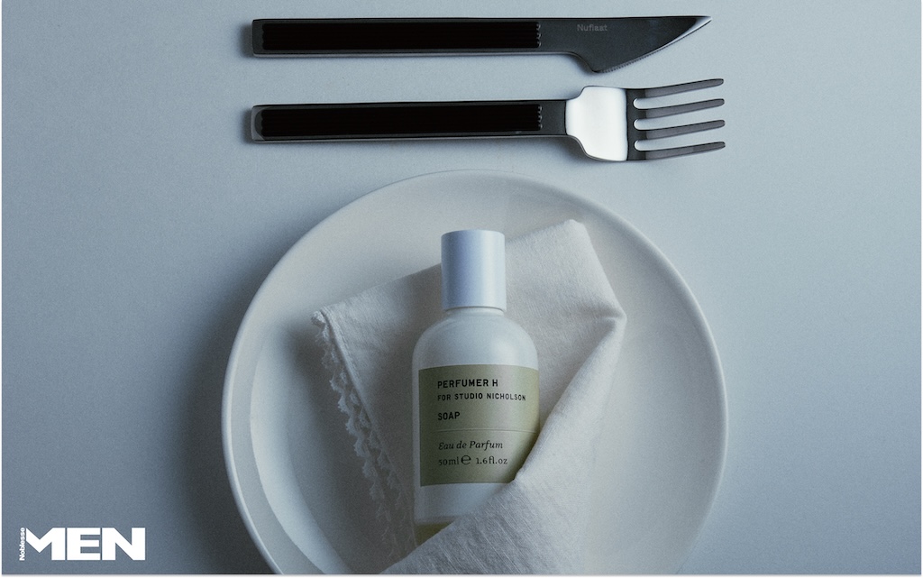 스튜디오 니콜슨과 협업한 솝 오 드 퍼퓸은 방금 세탁을 마친 옷을 입은 듯 포근함을 전한다. 화이트 머스크, 앰브록스, 통카 빈 향이 어우러져 부드럽고 풍부한 잔향을 남긴다. 커틀러리 Nuflaat.