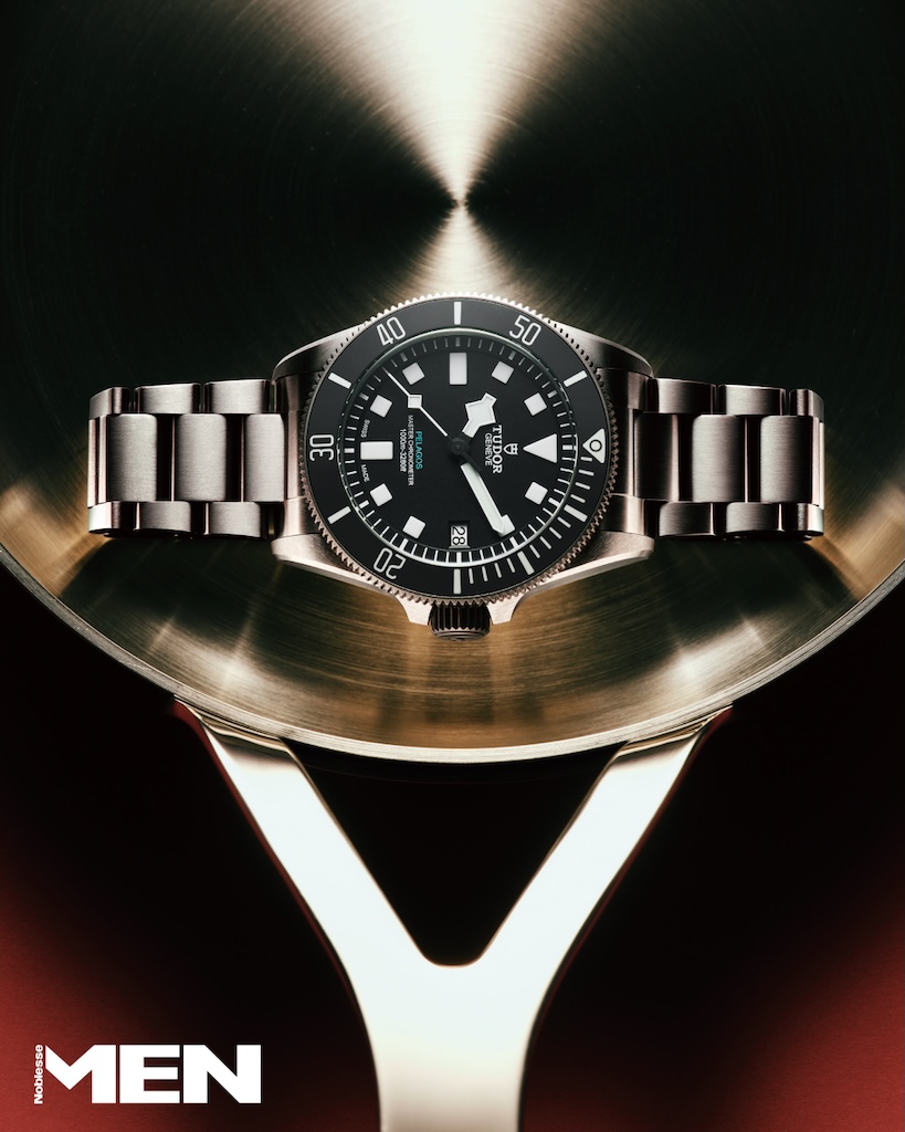 수심 1000m 방수 성능은 펠라고스 울트라의 성격을 단박에 보여준다. 지름 43mm 티타늄 케이스와 헬륨 배출 밸브, 매트 세라믹 베젤과 블랙 다이얼 모두 극한 수중 환경을 전제로 설계한 것. 기존 펠라고스의 블루 루미너스 컬러와 달리 분침과 베젤의 상단의 야광 마커를 그린으로 적용해 어두운 수중에서 경과 시간 측정을 더욱 용이하게 할 수 있도록 매만졌다. 내부에는 METAS 마스터 크로노미터 인증 칼리버 MT5612-U를 탑재해 1만5000가우스 항자성과 65시간의 파워리저브를 지원한다. Tudor.
