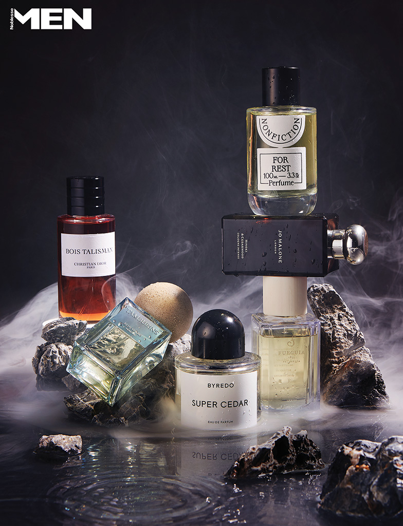 편백나무 향이 드라이한 삼나무 향으로 이어지며 삼림욕을 즐기는 듯한 기분을 선사한다. 히노키 앤 시더우드 코롱 인텐스 Jo Malone London.