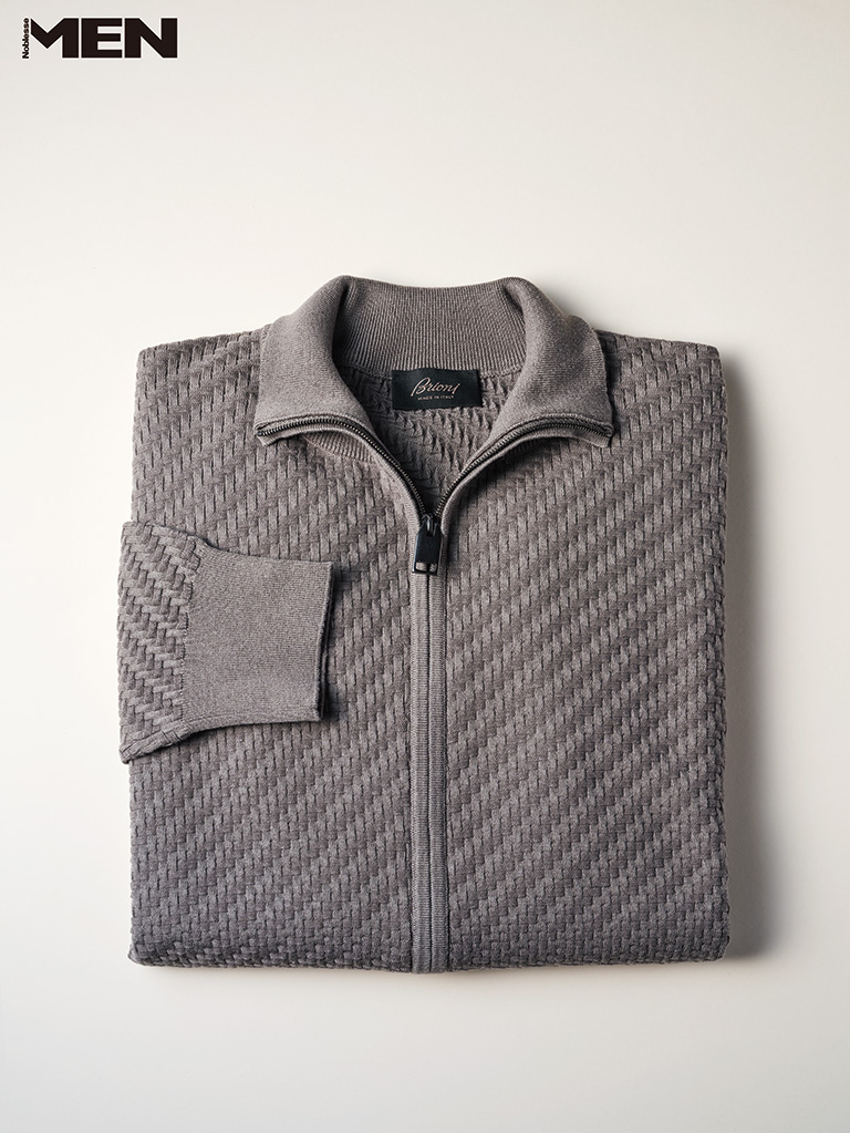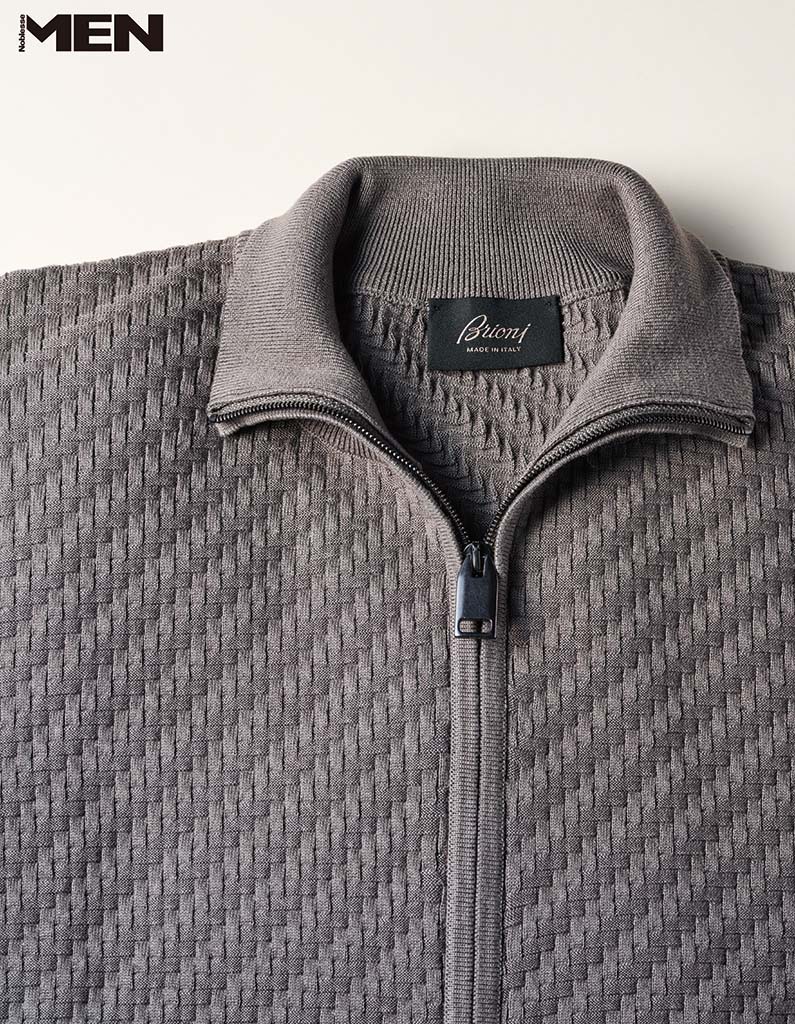 로만 클래식 감성 브리오니의 트라마 직조법에는 브랜드의 유산과 미학, 정체성이 스며 있다. 울퉁불퉁한 로마 거리의 보도블록, 산피에트리니에서 영감받아 3D 골지 짜임으로 니트 전반에 리듬과 입체감을 부여한다. 트라마 직조법의 니트는 다양한 소재 블렌드와 카테고리로 맞춤 제작이 가능하다. 화려한 장식이 아닌 구조적 패턴으로 룩에 포인트를 줄 수 있고, 캐주얼부터 클래식한 슈트까지 자연스럽게 조화를 이룬다. 트라마 니트는 진정한 로만 클래식의 다층적 스타일을 완성한다.