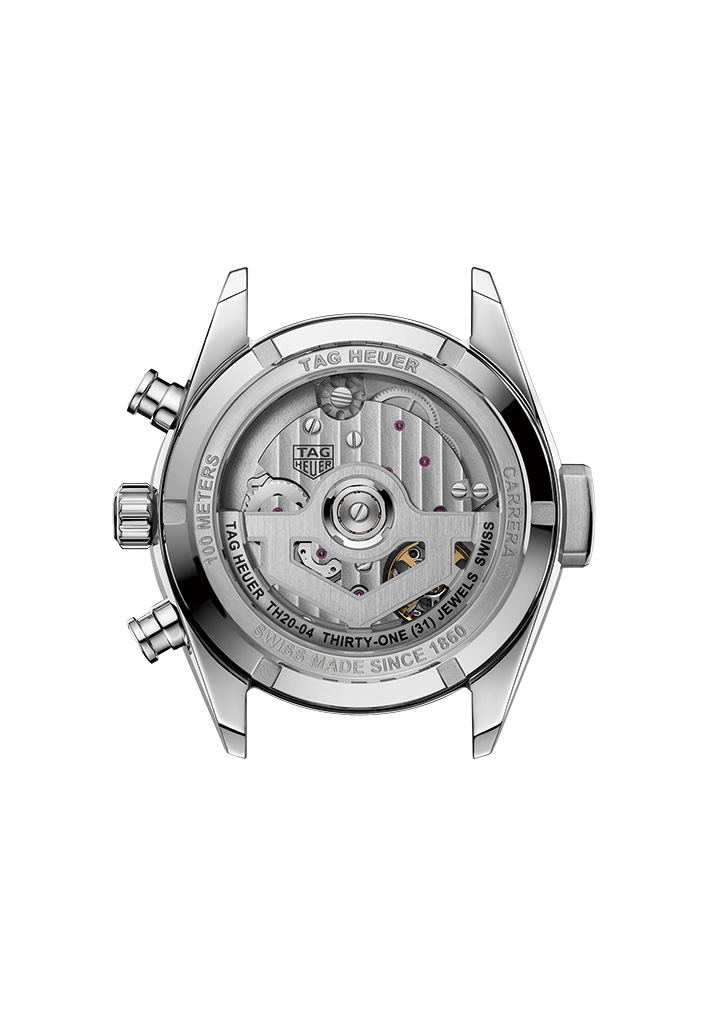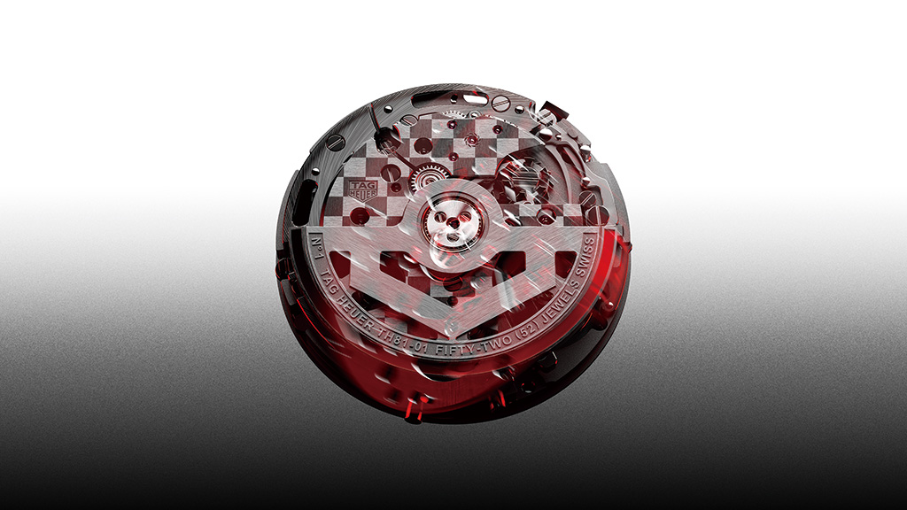 까레라 스플릿 세컨드 크로노그래프를 위해 개발한 TH81-01 무브먼트는 보셰 매뉴팩처 플러리에(Vaucher Manufacture Fleurier)와 협업했다. 크로노그래프의 정밀성을 보장하는 5Hz의 진동수, 65시간의 파워리저브는 무브먼트의 기술적 안정성뿐 아니라 시각적 아름다움으로도 존재감을 드러낸다. 사파이어 백케이스에는 플로팅 코드를 적용해 모든 각도에서 무브먼트를 감상할 수 있도록 설계했다. 350개 이상 부품으로 이뤄진 무브먼트는 블랙 폴리싱과 핸드 베벨링을 비롯한 10가지 이상의 수작업 마감 기법이 더해졌다. 상징적인 체커드 플래드 모티브는 태그호이어의 최고급 무브먼트로서 위상을 드러낸다.