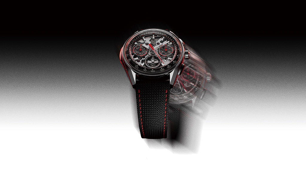 올해는 까레라의 DNA에 라트라팡테(Rattrapante) 컴플리케이션을 적용한 최초의 모델로서 혁신을 이어간다. 새롭게 선보인 까레라 스플릿 세컨드 크로노그래프는 고도의 기술력이 뒷받침되는 기능으로 나란히 놓인 2개의 초침이 동시에 흐르고 분리되며 정밀한 시간 비교 측정을 가능케 한다. 새로운 기술의 미학을 부각하는 지름 42mm 그레이드 5 티타늄 케이스는 글라스박스의 입체감을 살리고 날렵한 러그와 조화를 이룬다. 크라운 양옆에는 크로노그래프 작동을 위한 푸셔를 배치했고, 9시 방향 케이스 측면에는 스플릿 세컨드 기능을 제어하는 푸셔를 통합했다.