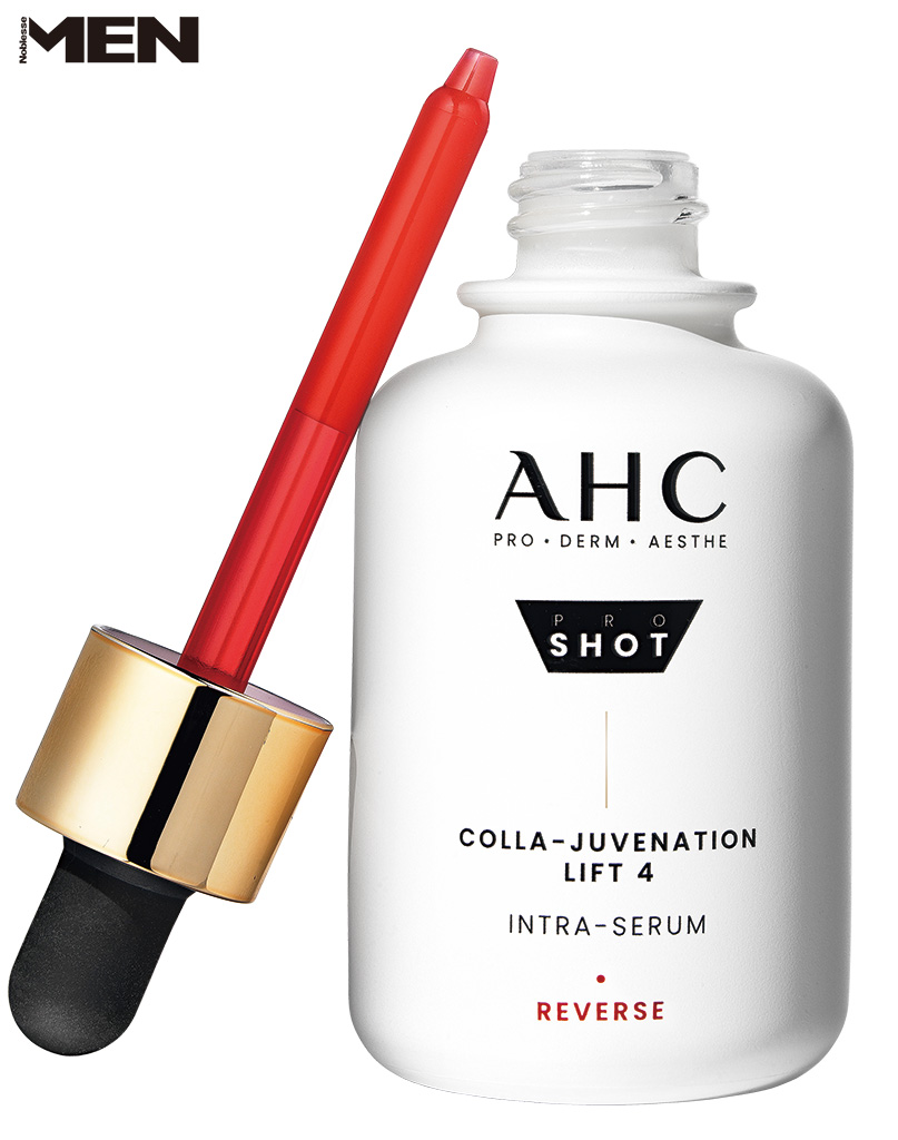 콜라겐, 펩타이드, 차세대 레티놀 HPR을 조합해 늘어진 모공을 수축하고 피부 탄력을 끌어올린다. AHC 프로 샷 콜라 쥬비네이션 리프트4 인트라 세럼.