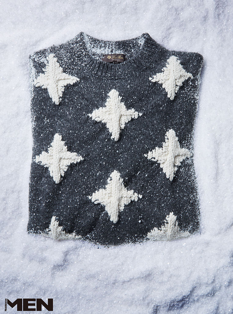 한파에 대항하는 물건 로로피아나 캐시미어 니트 스웨터. 캐시미어가 품은 온기를 온전히 느끼는 것도 좋고, 몸에 꼭 맞게 입기보다는 느슨하고 나른한 태도로 입는 것이 매력적이다. 단독으로 입어도 좋지만, 셔츠나 티셔츠를 레이어드하면 다양한 스타일링이 가능해 일당백 역할을 톡톡히 한다. 은은한 광택이 흐르는 캐시미어는 섬유의 보석이라는 수식어가 아깝지 않은 소재다.