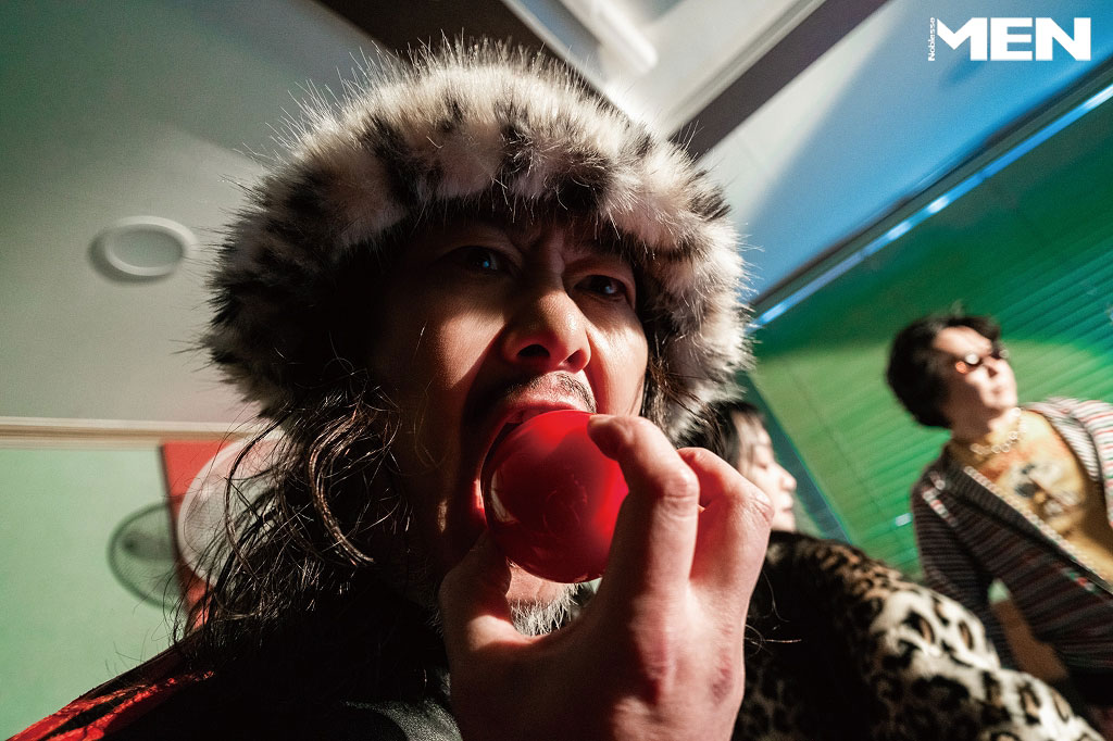 진만 _ 레드 스트라이프 후드 Main Booth, 레더 팬츠 스타일리스트 소장품.