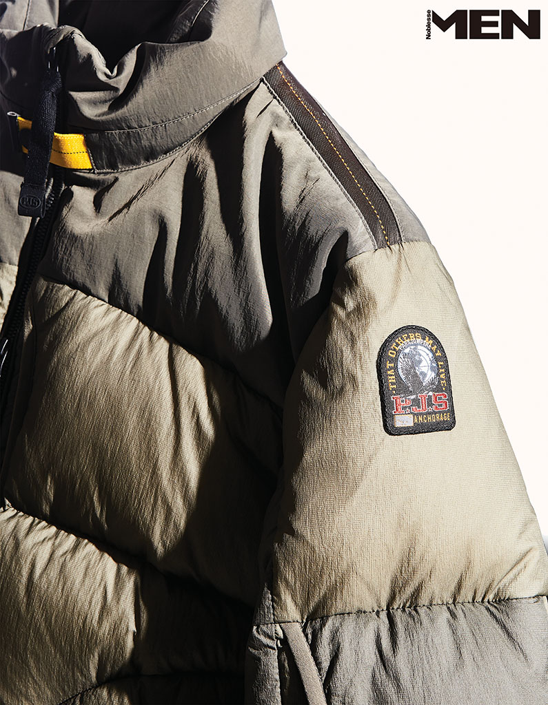파라점퍼스는 항공 구조대의 유니폼 소재와 디테일을 일상복으로 전환했다. 야리 다운재킷의 네크라인 부분에 장식한 옐로 테이프 메탈 버클은 구조용 버클에서 착안한 징표다. 초경량 나일론 마이크로 립스톱과 나일론 혼방 트윌을 어깨와 등, 소매 안쪽 등에 다르게 적용한 것 역시 기능을 디자인으로 활용한 예. 보온을 위해 내부에는 덕다운을 100% 사용하고 솜털이 빠져나가지 않도록 다운프루프 태피터 안감을 적용했다.