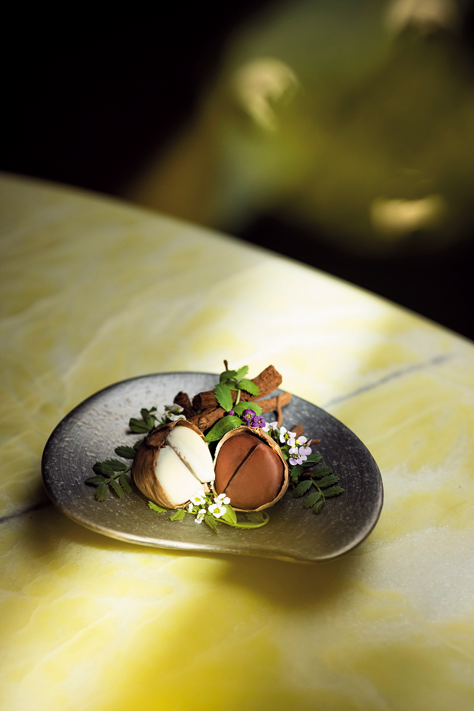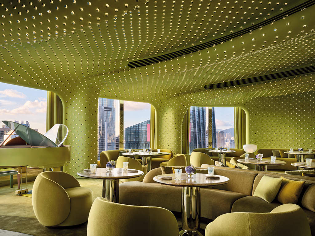 자하 하디드가 설계한 홍콩의 랜드마크 더 헨더슨 빌딩 38층에 자리한 다이닝 공간. 식물성 재료를 중심으로 한 요리와 특정 지역에서 영감받은 칵테일로 도심 속 새로운 미식 장면을 펼친다. 인테리어는 내추럴 퓨처리즘을 테마로 선명한 라임그린 팔레트와 2만여 개 수공 조명이 어우러져 낮과 밤의 분위기를 부드럽게 이어준다. 주방은 아르헨티나 출신 셰프 리산드로 일라(Lisandro Illa)가 이끌며, 발효를 중요한 조리 언어로 삼아 비건 중심의 메뉴를 선보인다. 당근, 호박, 생강을 넣은 부드럽고 건강한 수프를 시작으로 채소의 풍미를 알갱이 형태로 응축한 채소 캐비아로 불리는 스몰 플레이트, 향신료를 더해 강한 불에 구운 버섯 요리 순으로 이어지며 식물성 요리가 지닌 깊이와 확장성을 설득력 있게 보여준다. 칵테일 프로그램은 분기마다 하나의 지역을 조명하는 방식으로 전개하며, 첫 장은 일본 가고시마의 고구마와 수제 소주 문화에서 영감받은 시그너처 칵테일로 구성된다. 혁신적 다이닝과 라이브 음악, 파노라마 시티 뷰가 겹쳐지며 이곳만의 감각적 경험을 완성한다.