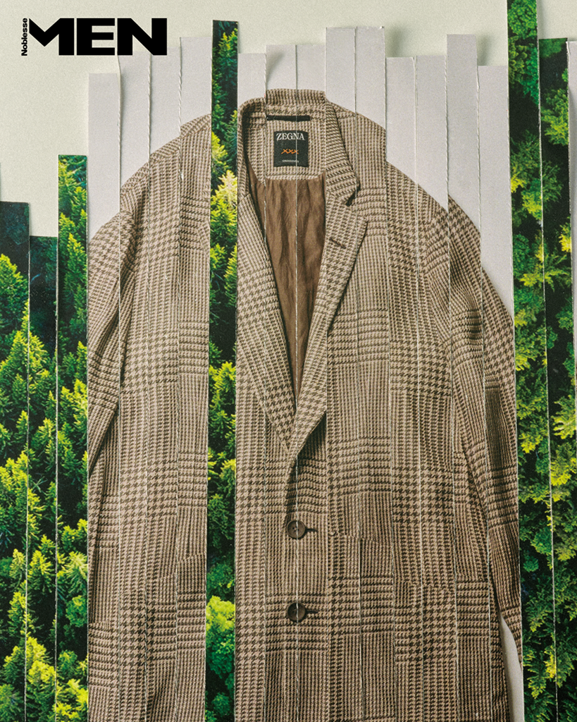 제냐의 지속가능성은 브랜드의 기원과 맞닿아 있다. 창립자 에르메네질도 제냐는 1930년대 이탈리아 피에몬테 트리베로 지역에 10만 그루 이상 나무를 심으며 산림 복원에 나섰고, 이는 오늘날 약 100km2 규모의 자연보호 구역 오아시 제냐로 이어졌다. 이곳은 단순한 숲이 아닌, 생물 다양성과 지역 생태계를 보존하는 살아 있는 실험을 자처한다. 이와 함께 울 생산과정에서도 책임 있는 공급망 구축에 집중한다. 양모의 출처를 추적 가능한 시스템으로 관리하고, 동물 복지와 토지 관리 기준을 충족하는 원료만을 선별해 사용한다. 섬유 생산 전반에 걸쳐 에너지 사용과 환경 영향을 줄이기 위한 공정 개선 역시 눈길을 끈다. 숲을 가꾸는 일에서 시작된 자연을 향한 제냐의 경외심은 미래를 지탱하는 기반으로 남아 있다. 프린스 오브 웨일스 체크 재킷.