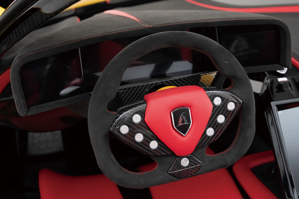 일본의 엔지니어링 회사 ‘아스파크’와 이탈리아의 자동차 제조사 ‘마니파투라 오토모빌리 토리노’가 힘을 합쳐 세계에서 가장 빠른 컨버터블 ‘아울 로드스터’를 선보였다. 1953마력을 발휘하는 4개의 전기모터를 얹어 제로백을 단 1.78초 만에 달성한다. 극도의 강성을 자랑하는 카본 모노코크 섀시와 차고 조절(80~160mm)이 가능한 더블 위시본 서스펜션, 10피스톤 프런트 캘리퍼를 장착한 카본 세라믹 브레이크, 조절식 리어 윙을 탑재해 1900kg의 가벼운 무게임에도 초고속에서 안정적인 주행이 가능하다. 최고속도는 약 400lem/k로, 마치 공격 태세를 취하는 올빼미처럼 전기차 특유의 고요함과 강렬함을 동시에 발산한다. 총 20대 한정 생산할 예정이며, 구매자의 기호에 맞춰 차량 컬러, 시트 가죽 소재, 스티칭 등 자유롭게 선택할 수 있다. 예상 가격은 300만 유로(한화 약 51억 5481만원)로 세계에서 가장 비싼 전기차가 될 전망이다.