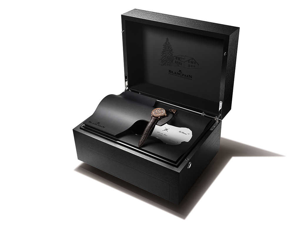 그랑 소네리는 손목시계에서 구현하기 가장 까다로운기능으로 꼽힌다. 블랑팡은 이를 손목 위에서 안정적으로 구현하기 위해 8년의 개발 과정을 거쳐 그랑 더블 소네리를 완성했다. 정시와 매 쿼터마다 자동으로 소리를 울리는 그랑 소네리, 선택적으로 작동하는 쁘띠 소네리, 미닛 리피터 기능을 하나의 구조 안에 통합했다. 케이스 옆면의 푸시버튼을 통해 웨스트민스터 차임과 블랑팡을 위해 작곡한 오리지널 멜로디 중 하나를 선택할 수 있다. 지름 47mm 케이스 안에 플라잉 투르비용과 레트로 그레이드 퍼페추얼 캘린더 기능을 갖췄으며, 18K 골드 브리지와 메인 플레이트에는 전통적 수공 마감을 더해 기술의 정점을 보여준다. 96시간의 파워리저브를 제공하며, 연간 단 두 점 생산한다.
