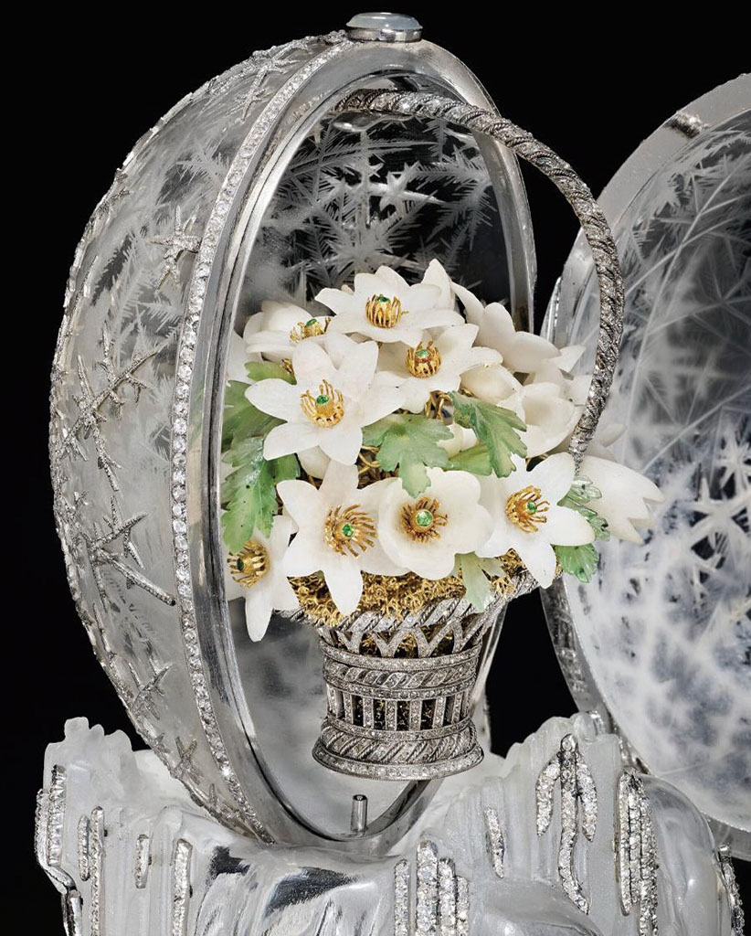 2025년 12월 런던 크리스티 경매에서 파베르제의 부활절 달걀 중 하나인 윈터 에그가 약 2290만 파운드(약 444억 원대)에 낙찰되며, 파베르제 달걀 경매 사상 최고가를 기록했다. 이 작품은 러시아의 마지막 황제 니콜라이 2세가 1913년 가족에게 부활절 선물을 주기 위해 당대 보석 장인 파베르제 공방에 의뢰한 것이다. 해당 공방이 1885~1917년에 만든 부활절 달걀은 약 50점이며, 현존하는 개인 소장품은 7점이고, 나머지는 러시아 황실 해체 이후 대부분 분실되거나 국가 기관이 소유하고 있다. 높이 약 8cm 크기의 이 달걀은 백금과 로즈 컷 다이아몬드로 눈송이 패턴을 새겼고, 내부에는 석영과 가닛으로 만든 작은 꽃바구니를 넣어 황실 공예의 정교함을 보여준다.
