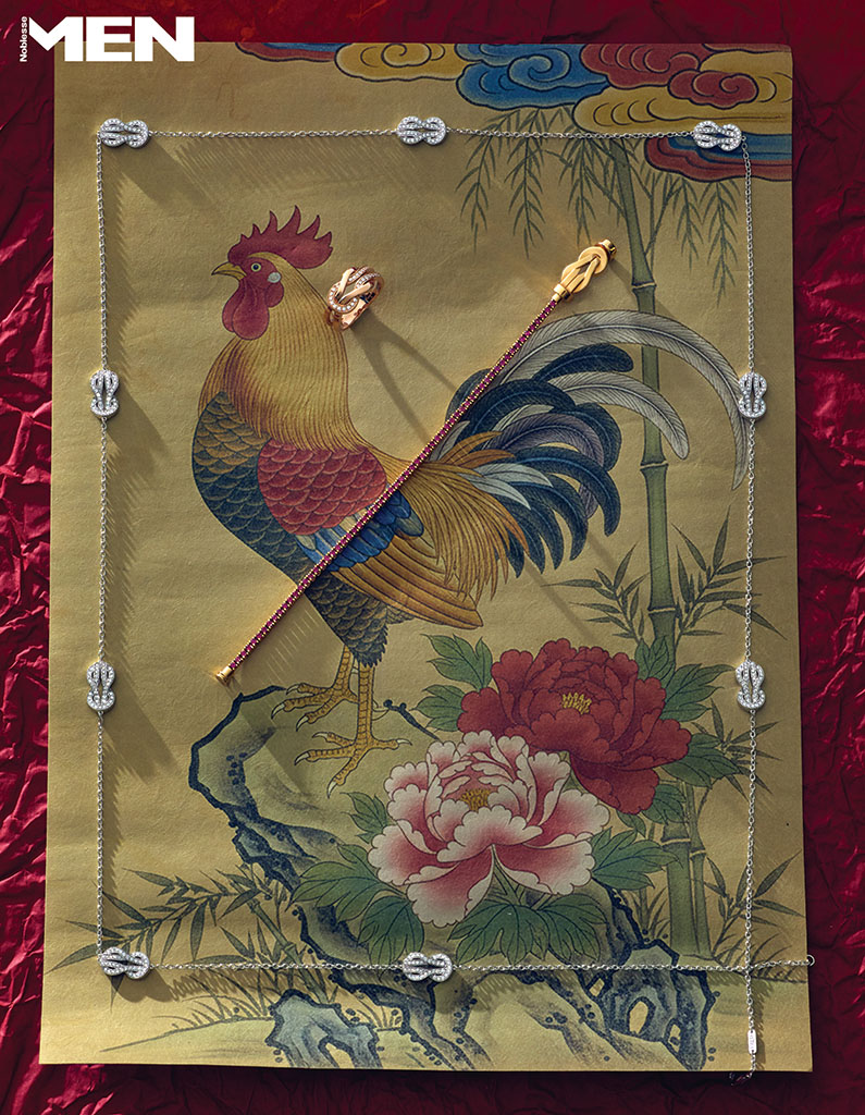 위부터 _ 무한한 행운을 형상화한 인피니티 모티브에 브릴리언트 컷 다이아몬드를 파베 세팅한 샹스 인피니 소트와르 네크리스, 핑크 골드와 화이트 다이아몬드로 이루어진 샹스 인피니 링, 옐로 골드 버클과 루비를 세팅한 케이블을 조합한 샹스 인피니 브레이슬릿 모두 Fred.