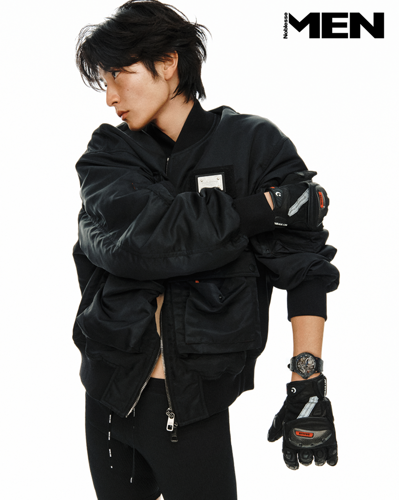 보머 재킷 Dolce&Gabbana, 하프 타이츠 Nike, 레이싱 장갑 에디터 소장품.