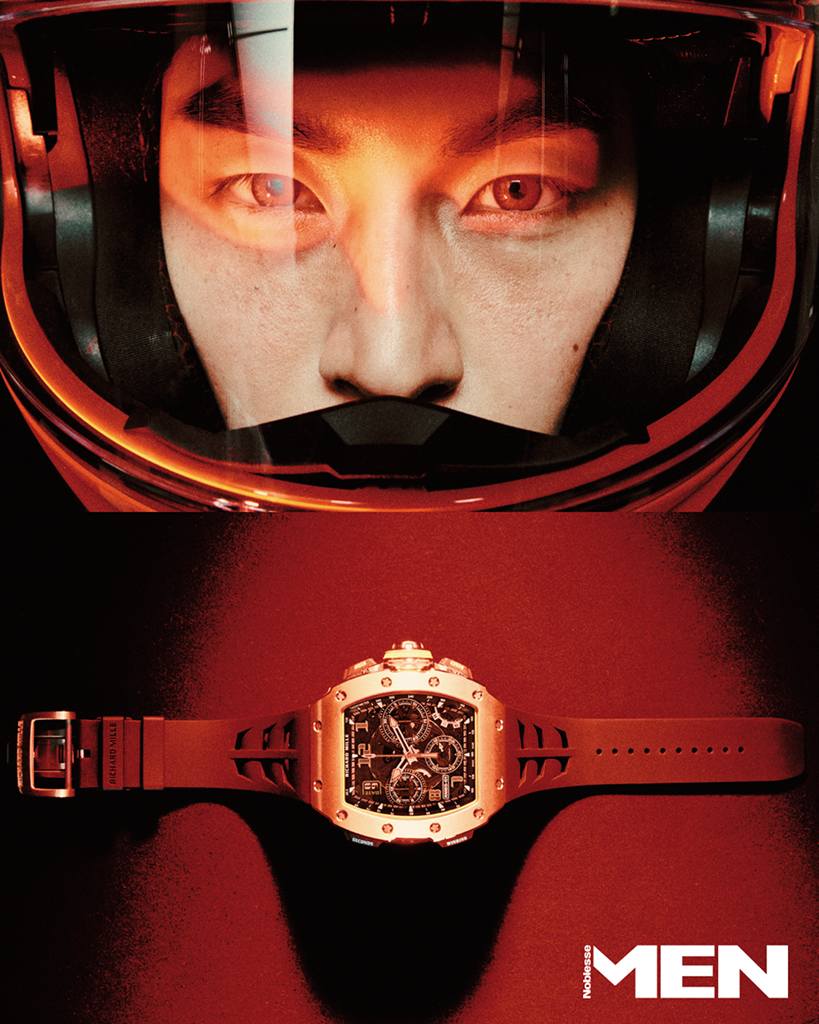 Richard Mille 레드 골드와 카본 TPT케이스의 RM 65-01 오토매틱 스플릿 세컨즈 크로노그래프. RMAC4 칼리버를 기반으로 시, 분, 초, 날짜 표시, 3시 방향의 30분 카운터가 자리한다. 9시 방향에 12시간 카운터를 갖춘 스플릿 세컨즈 크로노그래프 기능을 배치하고, 기능 셀렉터와 고속 와인딩 메커니즘, 가변 지오메트리 로터를 적용한 구조가 특징이다.