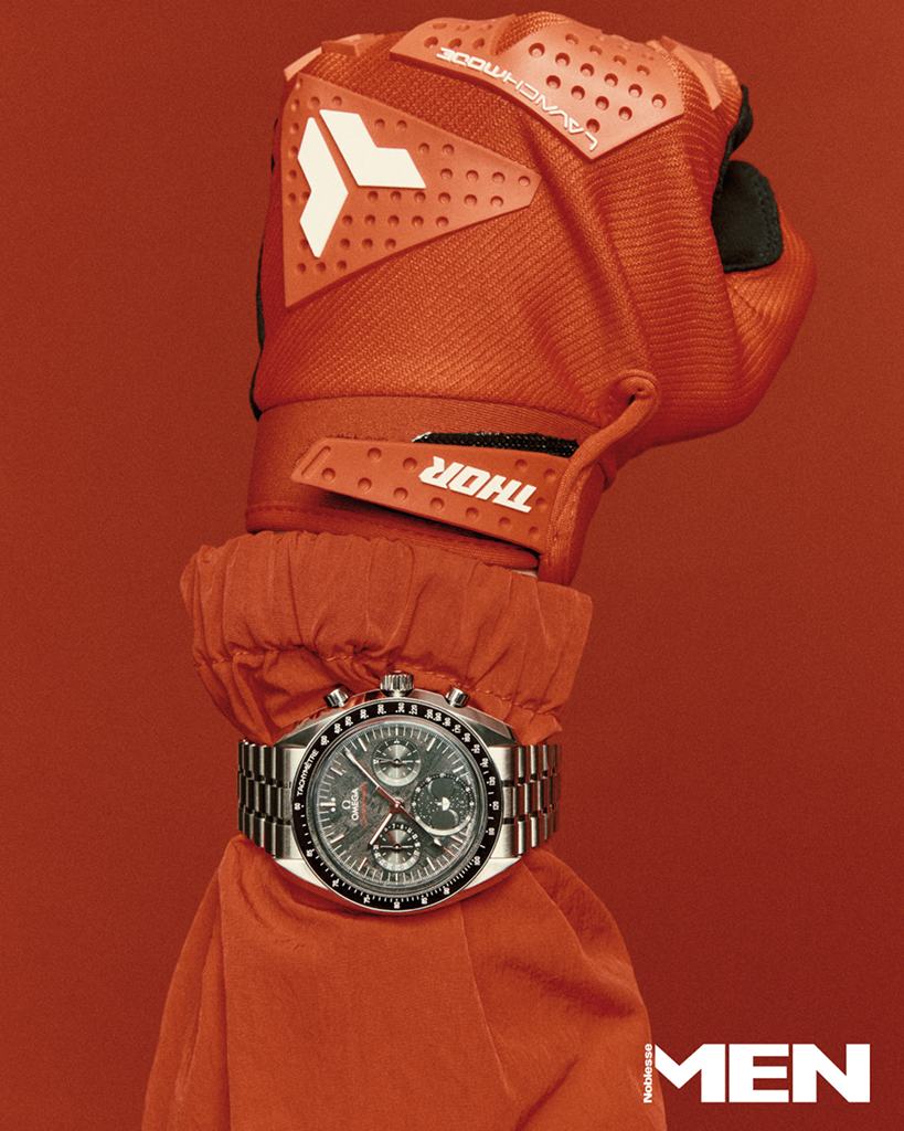 Omega 우주탐사와 정밀 계측의 상징으로 자리 잡은 스피드마스터 컬렉션의 기술을 담은 모델. 블랙 세라믹 베젤의 타키미터 스케일과 크로노그래프 카운터가 속도와 시간을 기록하며, 운석을 조각한 문페이즈 디스플레이를 배치했다. METAS 인증 마스터 크로노미터 수동 칼리버 9914를 탑재해 60시간의 파워리저브와 뛰어난 항자성을 제공하는 스피드마스터 문페이즈.