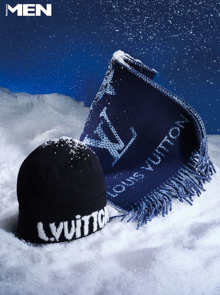 울 다미에 풀오버와 모노그램 블라스트 비니 모두 Louis Vuitton.