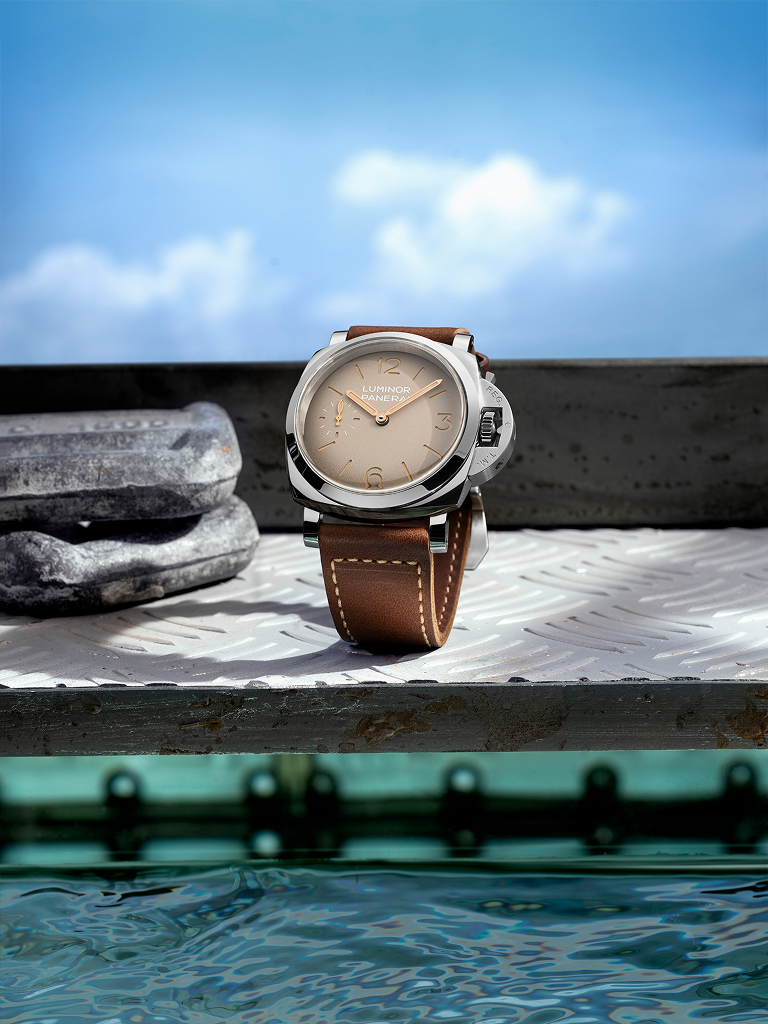 이번 신제품은 파네라이가 일관되게 발전시켜온 퍼포먼스인 방수, 야광, 장시간 파워리저브, 견고한 구조, 소재 혁신을 다시 조명하는 데서 출발했습니다. 수동식 무브먼트와 기능 중심 디자인 코드로의 복귀이기도 하죠. 쿠션형 케이스, 크라운 보호 브리지, 샌드위치 다이얼, 돔형 크리스털까지. 이 요소는 모두 이탈리아 해군 잠수 임무라는 극한의 요구 상황에서 태어났죠. 이를 바탕으로 현대적 무브먼트와 소재 기술로 퍼포먼스를 표현하는 것이 이번 컬렉션의 핵심입니다. 루미노르 PAM01731, PAM01735는 역사적 모델의 케이스 구조를 그대로 계승하고, 루미노르 데스트로 PAM01732는 다이버가 왼손으로 계측 기기를 자유롭게 조작할 수 있도록 오른손 착용을 전제로 설계된 모델입니다. 루미노르 31 지오르니(Giorni) 47mm PAM01631은 이 철학의 정점을 대변하는 시계고요. 단순히 과거를 재현하는 것이 아니라 역사적 메커니즘을 현대적으로 해석해 착용성, 퍼포먼스, 일상적 신뢰성에 맞게 적용하는 데 집중했습니다.