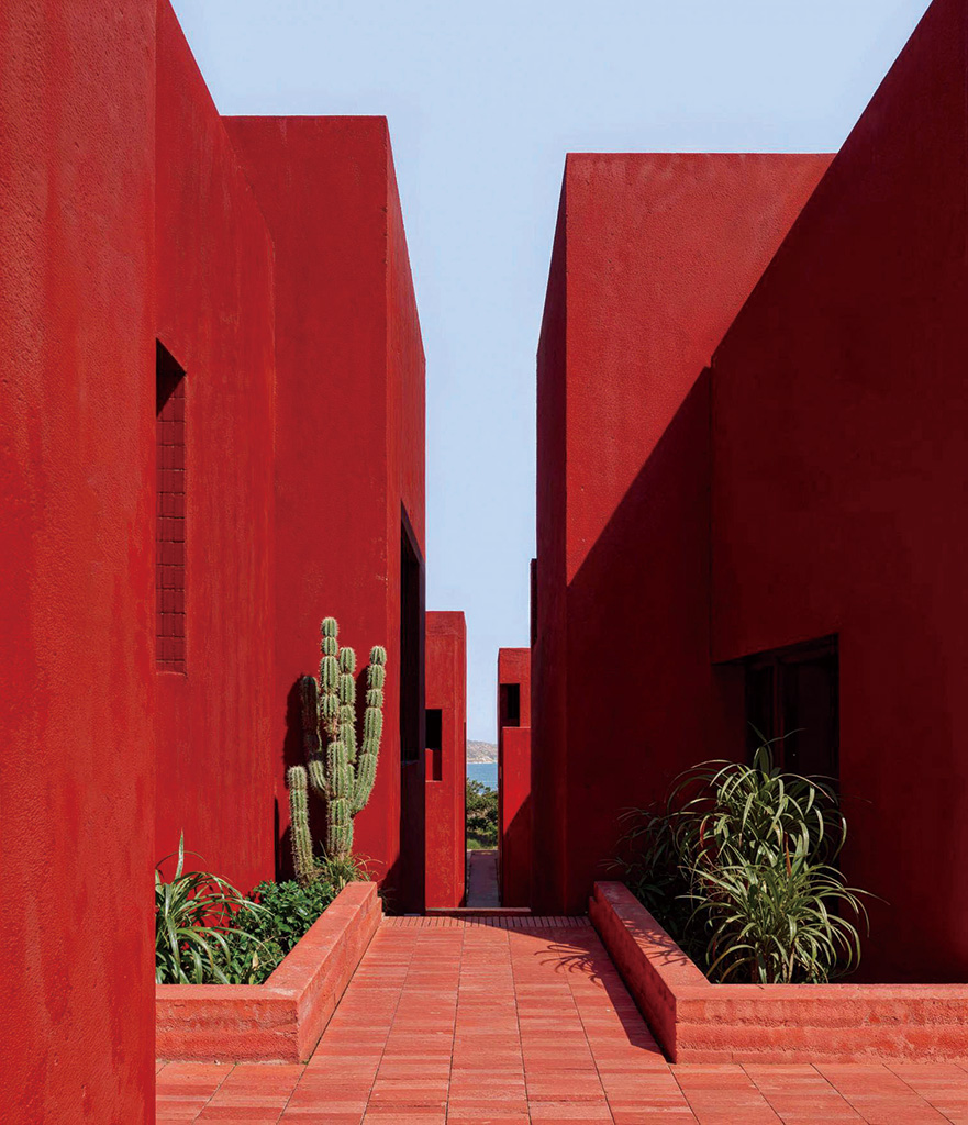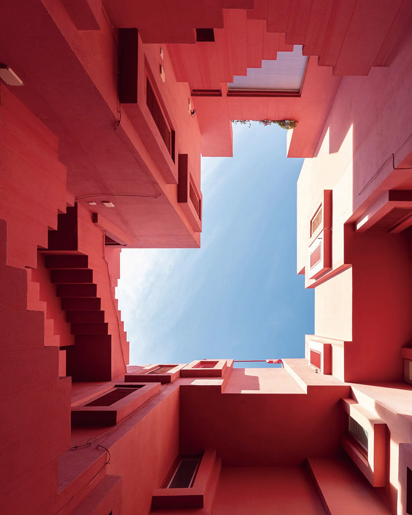 모르스 코르넬리스 에셔의 초현실적 작품을 닮은 미로 같은 건축물은 2025년 말 완공을 앞두고 있다. 리카르도 보필 건축이 알바니아 해안 도시 드르미에 설계한 레드 솔 리조트로, 강렬한 붉은색과 픽셀을 연상시키는 구조미가 시선을 사로잡는다. 총 1만2750m2 규모의 단지는 19채의 빌라와 20세대 아파트로 구성된다. 멀리서 보면 정사각형 박스를 연속 배치한 형태지만, 위에서 내려다보면 복잡한 경로와 입체적 구조가 얽힌 미로가 펼쳐진다. 사각 매스가 들쭉날쭉 솟아오른 모습은 완만하게 굽이치는 알바니아 특유의 지형 리듬을 그대로 따른 결과물이다. 이 디자인은 리카르도 보필의 1970년대 대표작 ‘라 무랄라 로하(La Muralla Roja, 붉은 벽)’에서 영감받았다. 동시에 카스바(kasbah, 전통 이슬람 요새 건축)에서 착안해 요새형 구조로 완성했는데, 이는 외부와의 차단을 넘어 건물 간 연결성과 다채로운 조망점을 제공한다. 단지 곳곳은 외부 계단, 다리, 보행로를 촘촘히 연결해 공용 공간과 숙박 공간을 유기적으로 묶는다. 건물 전반에는 테라스, 야외 수영장, 울창한 정원을 배치했고, 바다를 향해 곧게 뻗은 계단 끝에서는 푸른 하늘과 수평선, 주변 녹지가 액자 속 풍경처럼 한눈에 들어온다.