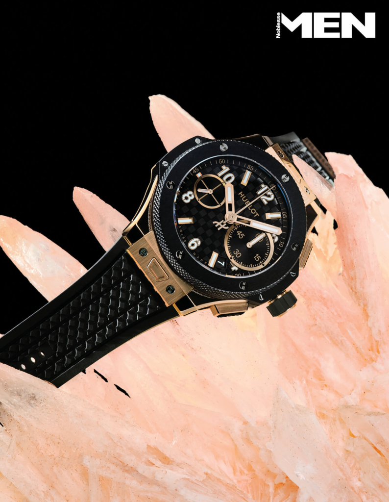 킹 골드 소재 케이스와 블랙 세라믹 베젤이 맞물리며 서로 다른 물성을 한 구조 안에 담았다. 6개의 H형 스크루와 오픈워크 다이얼 등 빅뱅 특유의 입체적 디자인을 살리고, 자체 제작 유니코 자동 크로노그래프 무브먼트는 72시간 파워리저브와 플라이백 기능을 수행한다.