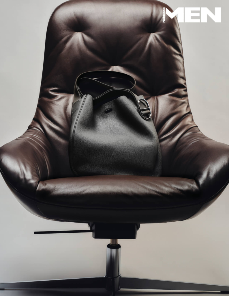 입체감을 살린 표면, 자연스럽게 드러나는 결, 말랑한 탄력과 부드럽고 유연한 감촉 등 사진으로는 온전히 전해지지 않는 가죽의 물성이 예술이다. 가방 옆면의 닻에서 영감받은 샹 당크르 모티브 메탈 장식은 시각적 즐거움을 선사한다. 리클라이너 체어 Rolf Benz by YOU AND US.