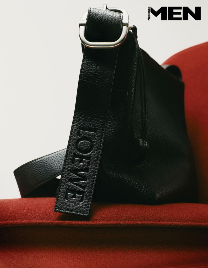 손잡이는 매끈하게 가공한 가죽으로 형태를 또렷이 잡고, 몸체는 부드러운 스웨이드로 만들어 자연스러운 실루엣과 질감의 대비를 살렸다. 가방 자체가 유연해 사용자의 일상에 맞춰 형태가 변한다는 점도 특징. 밑에는 단단한 가죽을 덧대 바닥에 내려놓았을 때 쉽게 무너지지 않도록 설계했다. 라운지 체어 Rolf Benz by YOU AND US.